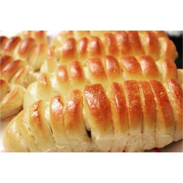 Beat one egg and brush on the bread. It will give it that golden brown look. Put in the oven to bake for about 25- 30 minutes